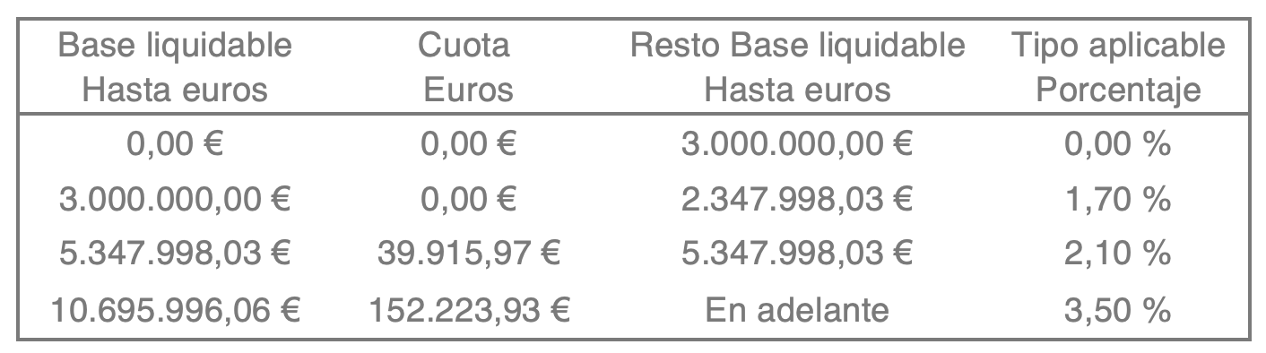 · Con carácter general, para contribuyentes con un patrimonio neto superior a 10.695.996,06 euros se contempla un tipo marginal del nuevo ISGF (3,5%) superior al contemplado en la normativa gallega del IP (2,5%), sin perjuicio de que cada caso deberá ser analizado particularmente habida cuenta que las tablas que definen el tipo de gravamen para ambos impuestos son distintas para algunos tramos de patrimonio. En este sentido, la escala de gravamen del nuevo ISGF responderá al siguiente detalle: